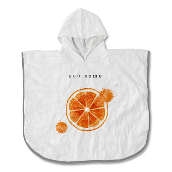 fruta laranja com nome no roupão