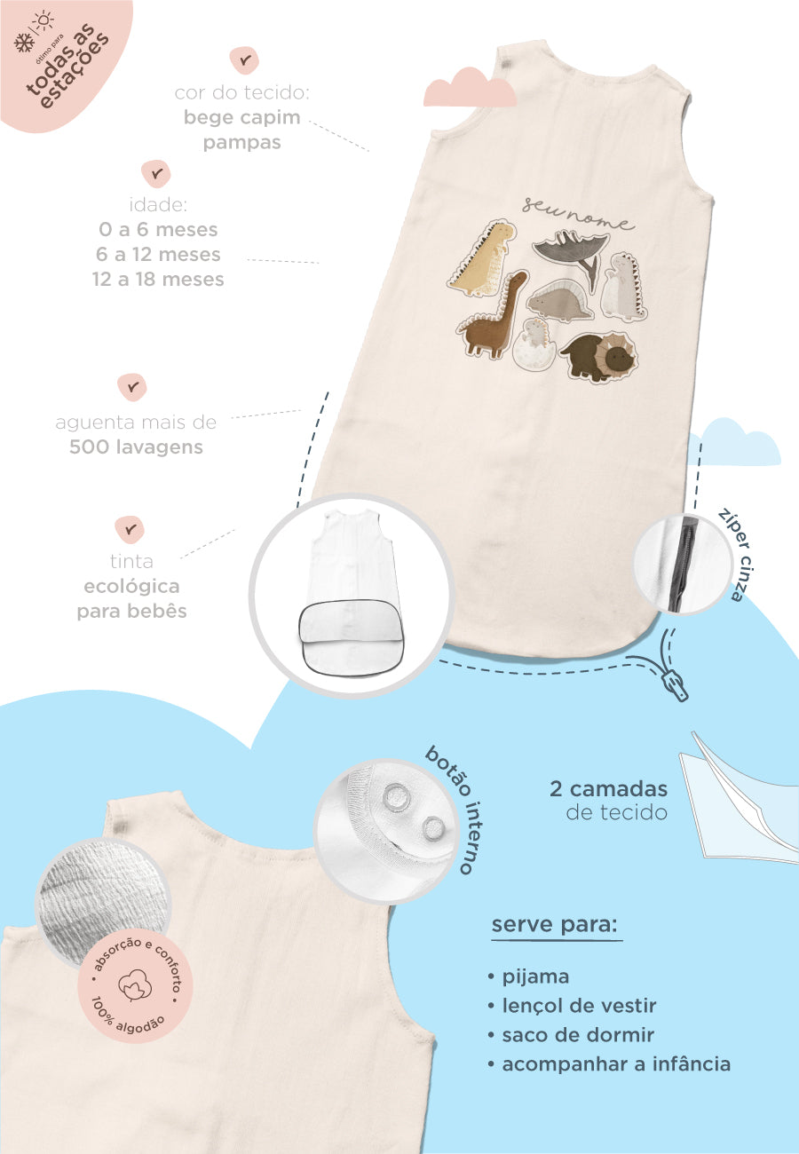 nosso lençol de vestir, saco de dormir para todas as estações ou pijama é ideal para sonos não supervisionados. ele é 100% seguro para o seu bebê e criança. é muito prático, com abertura para troca de fraldas e vai acompanhar a infância inteira, já que possui abertura/zíper inferior, podendo ser usado dos dois jeitos, saco de dormir e pijama
